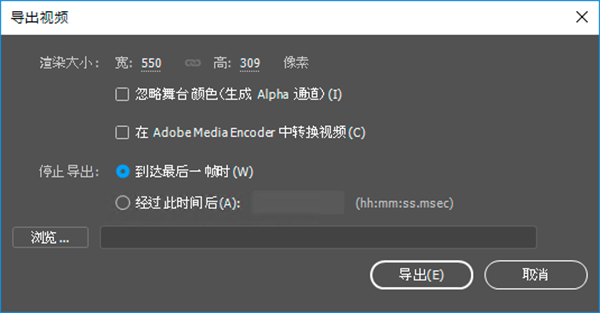 ⑤停止導(dǎo)出:指定 Animate 何時(shí)終止導(dǎo)出。