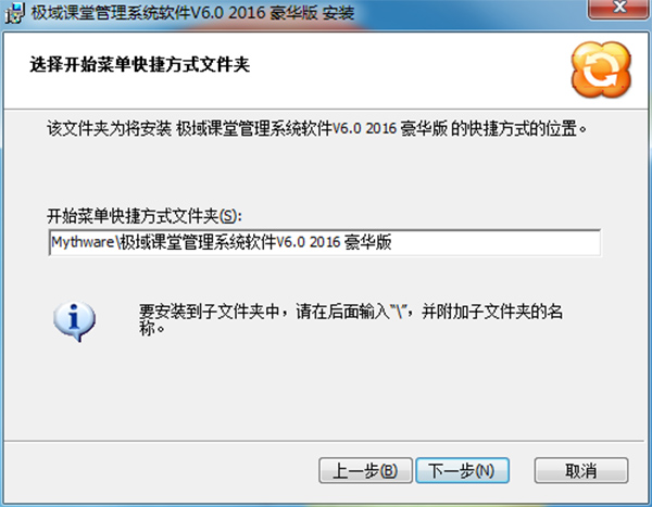 5、選擇開始菜單快捷方式文件夾,默認即可