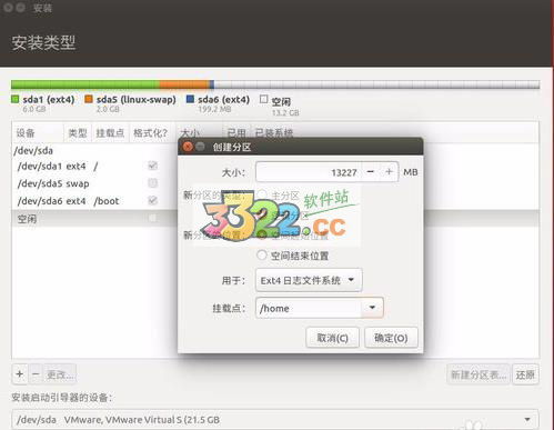 創(chuàng)建home分區(qū):