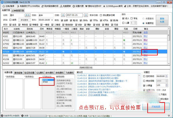3、再點(diǎn)擊你要預(yù)訂的車(chē)票,直接開(kāi)始搶票即可