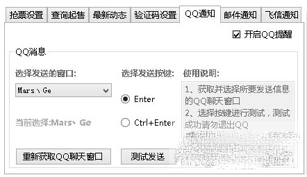 4、訂票取得成功:設(shè)定好訂票成功提示QQ、短消息、響聲提示等,45分鐘之內(nèi)官方網(wǎng)站付款