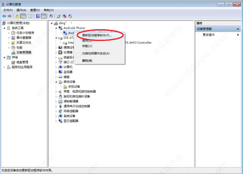 4、點(diǎn)擊“adb interface”,右鍵選擇“更新adb驅(qū)動(dòng)程序“;
