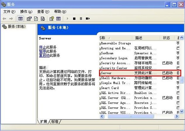 這主要是由于系統(tǒng)Server服務(wù)沒(méi)有啟動(dòng),要解決此問(wèn)題,請(qǐng)使用請(qǐng)打開(kāi):控制面板->性能和維護(hù)->管理工具->服務(wù),找到如下圖服務(wù),將其啟動(dòng),然后再重新安裝即可