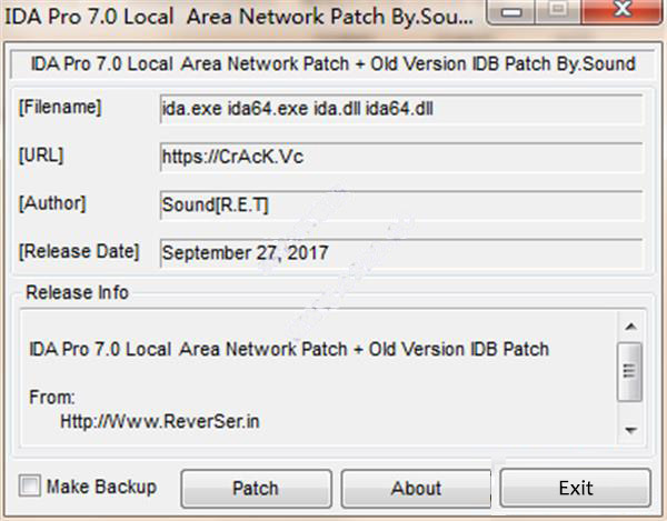3、將“patch”目錄下的IDA Pro注冊機(jī)復(fù)制到安裝目錄下運(yùn)行,點(diǎn)擊“Patch”完成破解