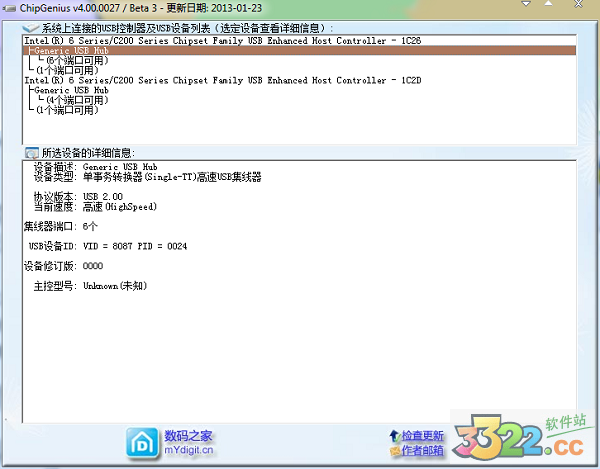 分成左右兩個部分,里面是USB設備列表框,以下是表明所選的設備詳盡信息。