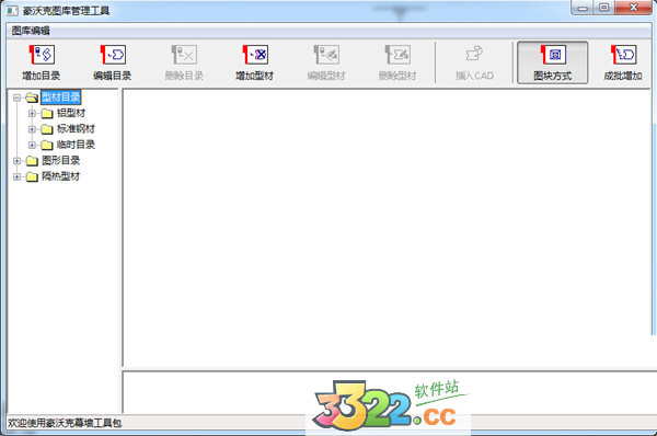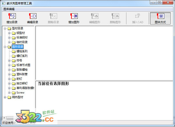 ps:注意到上面的按鈕欄有的是灰色的。所有型材或圖形的操作都需要基于目錄進行操作,如果沒有選擇適當?shù)哪夸?,則所有操作按鈕均不可使用。鼠標選擇“型材目錄”,如“型材目錄”下面包含型材截面圖,則右邊自動顯示所包含的型材圖形,否則,不顯示任何圖形。但是有幾個按鈕可用,可以在當前選定目錄下增加目錄、編輯目錄、增加型材等操作。
