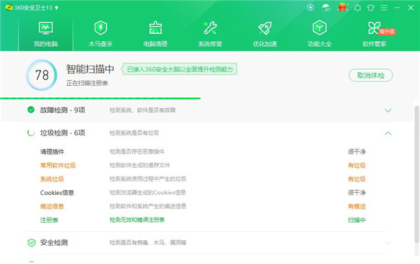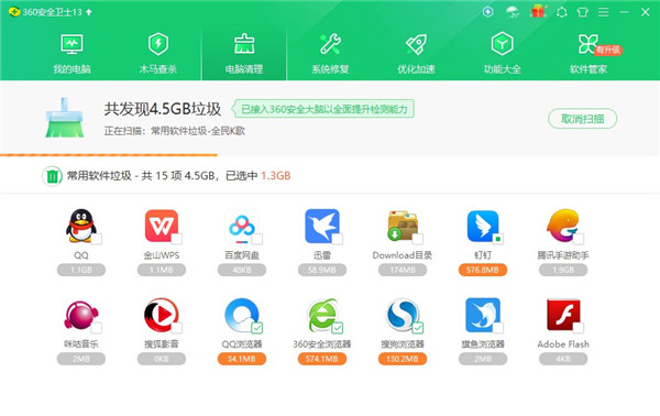 清理無(wú)用插件、軟件垃圾、瀏覽痕跡和無(wú)效注冊(cè)表。