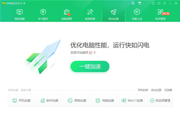 6. 系統(tǒng)加速:360安全衛(wèi)士電腦版提供了系統(tǒng)加速功能,能夠優(yōu)化電腦啟動(dòng)項(xiàng)、優(yōu)化系統(tǒng)服務(wù)、優(yōu)化網(wǎng)絡(luò)連接等,提升電腦的運(yùn)行速度。
