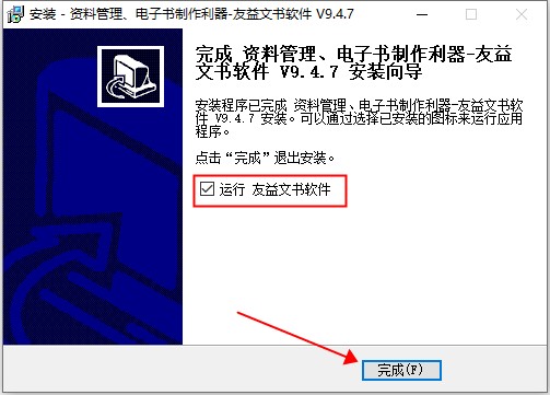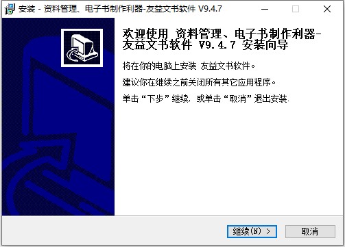 2、雙擊“友益文書軟件安裝包(完全版)v9.6.1.exe”開始安裝軟件;