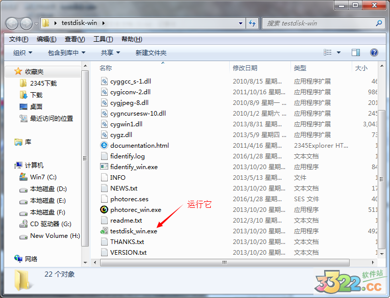 解壓縮后,打開(kāi)文件夾運(yùn)行其中的”testdisk_win.exe“。