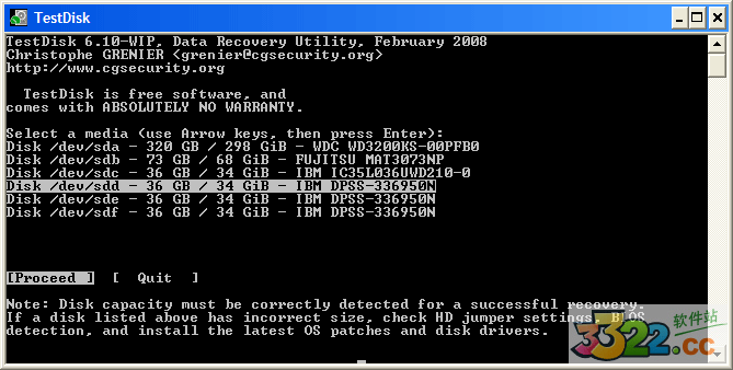 所有的硬盤(pán)都應(yīng)該能被TestDisk檢測(cè)到并且輔以正確的大小列出來(lái)。