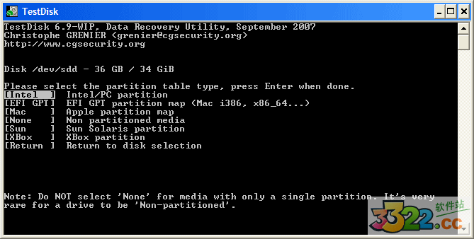 TestDisk 會(huì)顯示分區(qū)表類(lèi)型。
