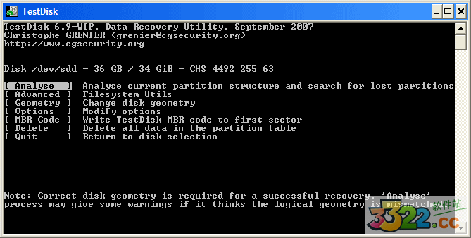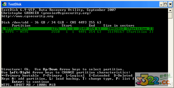 TestDisk 顯示這個(gè)菜單的時(shí)候