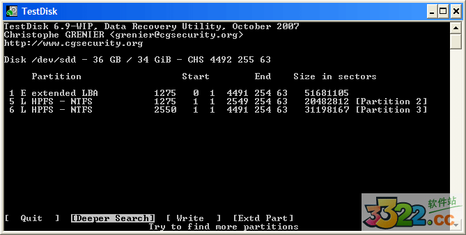 Deeper Search 深度搜索也會(huì)找尋 FAT32的備份boot扇區(qū) 以及 NTFS backup boot superblock, ext2/ext3 backup superblock 來(lái)查找更多的分區(qū),它將會(huì)掃描每一個(gè)柱面。