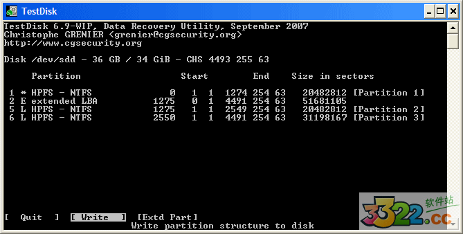 當(dāng)全部分區(qū)都可用的時(shí)候 并且數(shù)據(jù)已正確列出,應(yīng)該選 Write 菜單項(xiàng)保存分區(qū)結(jié)構(gòu).