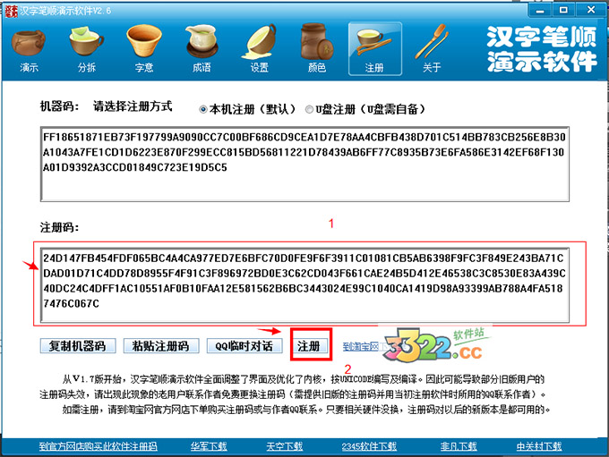1.打開漢字筆順演示軟件壓縮包里的注冊(cè)碼,復(fù)制輸入到注冊(cè)框內(nèi)即可,