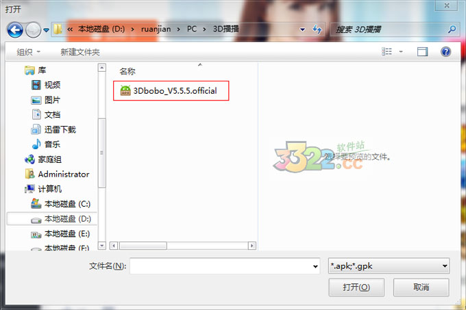 2.如果是選擇第一種安裝方式的話,接著會(huì)彈出一個(gè)窗口,只要選擇數(shù)據(jù)點(diǎn)擊“打開”就可以了,模擬器會(huì)自動(dòng)進(jìn)行安裝。