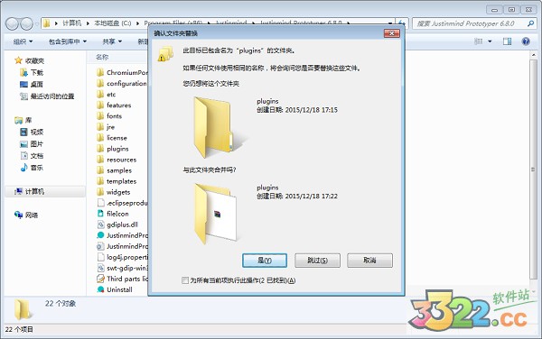 1、將壓縮包中“Justinmind6.8.0_For_Win漢化包”中全部復(fù)制到軟件根目錄下,默認(rèn)目錄為:C:\Program Files (x86)\Justinmind\Justinmind Prototyper 6.8.0,進(jìn)行替換操作