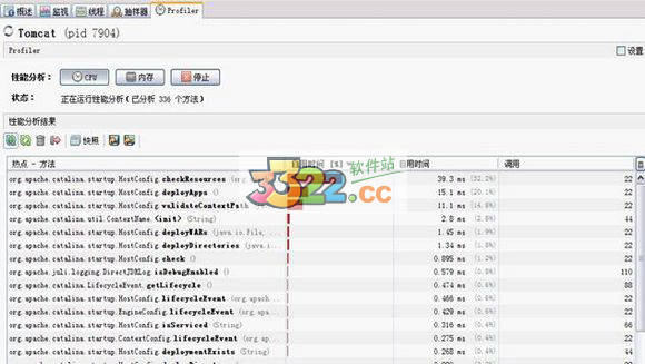 在 Profiler 標簽,點擊“CPU”按鈕啟動一個 CPU 性能分析會話 ,VisualVM 會檢測應用程序所有的被調用的方法。當進入一個方法時,線程會發(fā)出一個“method entry”的事件,當退出方法時同樣會發(fā)出一個“method exit”的事件,這些事件都包含了時間戳。然后 VisualVM 會把每個被調用方法的總的執(zhí)行時間和調用的次數按照運行時長展示出來。