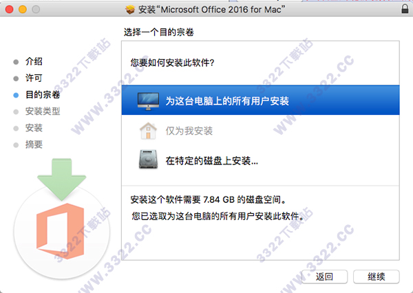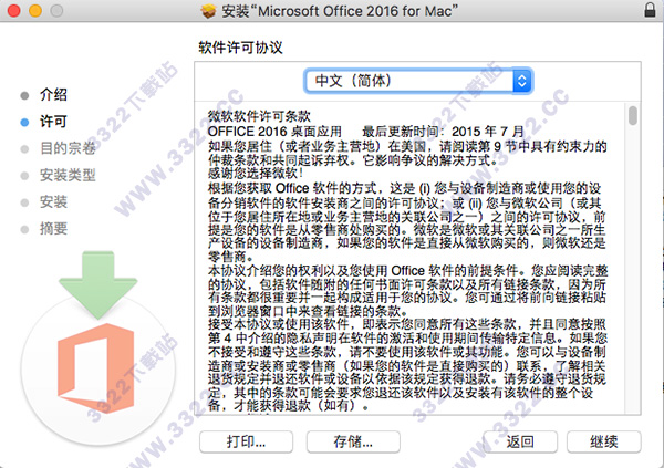 2、之后我們雙擊運(yùn)行“Microsoft_Office_2016_15.40.17110800_Installer.pkg”,安裝包,會彈出一個安裝器簡介窗口,我們點(diǎn)擊“繼續(xù)”,開始進(jìn)行安裝