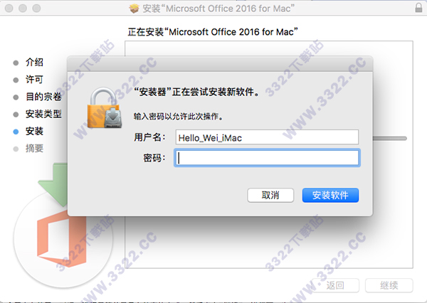 6、此時如果你的Mac設(shè)置了開機(jī)密碼的話,你需要輸入一次你Mac的開機(jī)密碼才能夠繼續(xù)進(jìn)行安裝,如果未設(shè)置開機(jī)密碼的Mac用戶,請忽略這一步