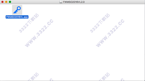 2、我們回到軟件資源包的解壓目錄下,找到那個名為“Microsoft_Office_2016破解補(bǔ)丁.dmg”的打包文件,將它打開,里面有一個名為“FWMSO2016VL.app”的程序,雙擊將它打開
