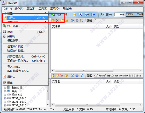 1、首先先啟動(dòng)軟件,然后在”文件---打開(kāi)“中打開(kāi)下載好的系統(tǒng)ISO鏡像文件