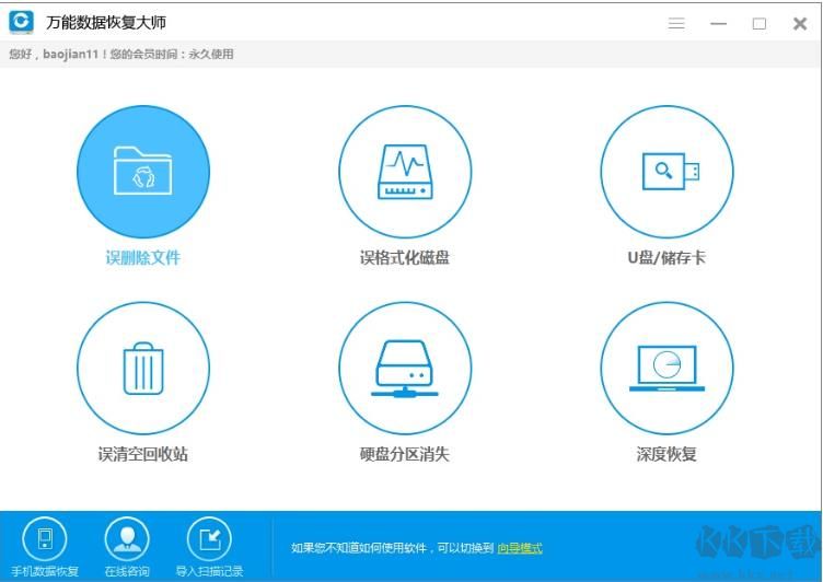 萬能數據恢復軟件非常專業(yè)好用,向導式的恢復步驟,小白也能使用!支持電腦硬盤數據恢復,也支持手機數據恢復~如果你寶貴的資料不慎丟失或損壞,可嘗試用這個軟件進行恢復。適用FAT12、FAT16、FAT32、NTFS、EXT2、HFS+、APFS系統文件,支持硬盤、SD卡、U盤、移動硬盤等,這款軟件掃描速度快,采用獨特技術深度掃描,最大限度的找到你丟失的文件,并高成功率的恢復它!