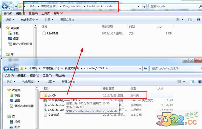 2、配置中文包,下載的壓縮包中有一個zh_CN文件夾,文件夾包含codelite.mo和codelite.po兩個文件,將文件夾zh_CN直接復(fù)制到CodeLite安裝目錄下locale文件夾內(nèi)。