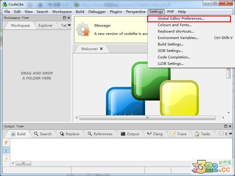 3、打開CodeLite軟件,從菜單【Settings->Global Editor Preferences】進入Editor Settings頁面