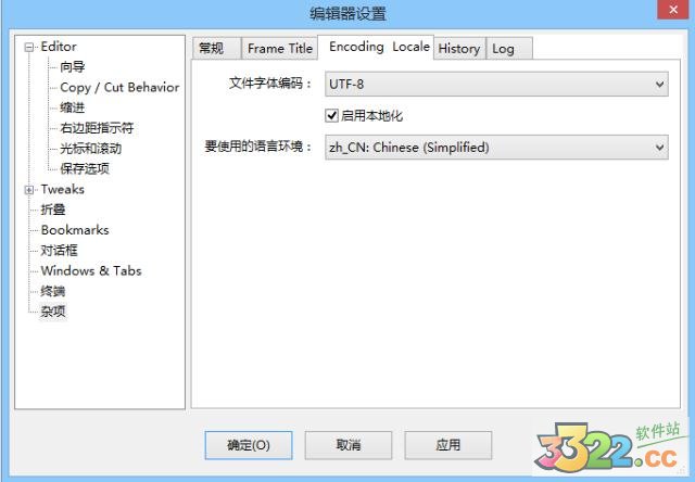 1.從菜單【設(shè)置->全局編輯器偏好】進入編輯器設(shè)置頁面,選擇【雜項->Encoding Locale】,設(shè)置文件字體編碼為UTF-8,然后點【應(yīng)用】。