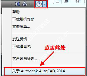 3、進(jìn)入程序后選擇窗口右上角“幫助”下拉列表按鈕,選擇“關(guān)于AutoCAD2014”選項