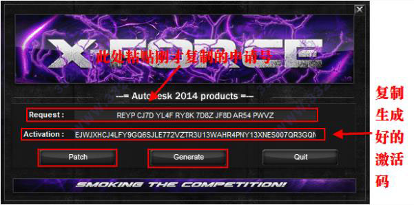 8、進(jìn)入安裝包,根據(jù)自己的操作系統(tǒng)選擇相應(yīng)的注冊機(jī),打開注冊機(jī)使用Ctrl+V 粘貼申請?zhí)?,粘貼完成以后,先選擇“Patch”選項,然后再選擇“Generate”生成激活碼