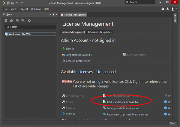 4、選擇安裝包,Licenses目錄下任意一個文件載入即可,Altium Designer 18破解版安裝完成。