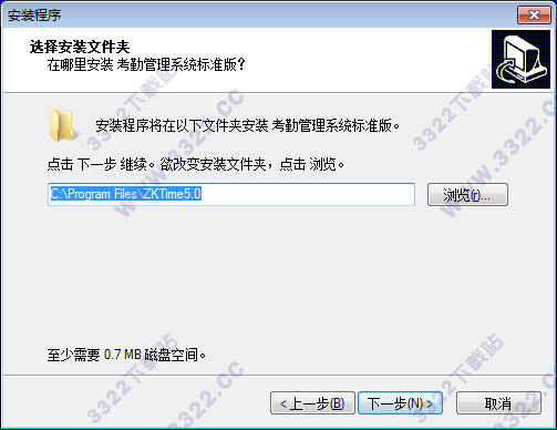 5、安裝軟件位置目錄放置路徑C:\Program Files\ZKTime5.0,修改點(diǎn)擊瀏覽按鈕,下一步
