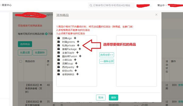3、選擇您要添加折扣的商品就可以了,選擇完成后點(diǎn)擊【保存】,如kkx分享的截圖: