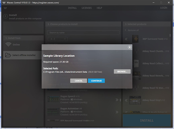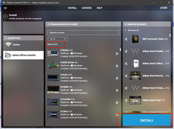 1、下載安裝Waves軟件,打開(kāi)“install products”開(kāi)始安裝插件;