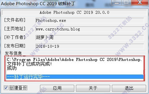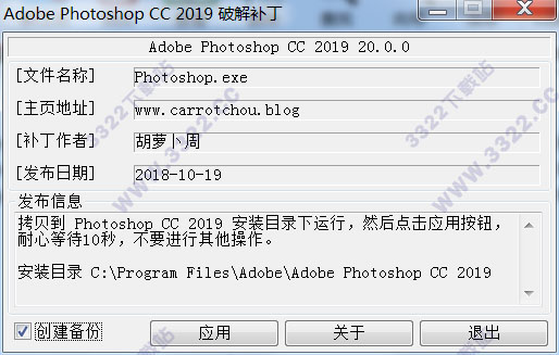 5、接下來開始破解,將photoshop cc 2019破解補丁文件“adobe.photoshop.cc.2019.20.0.0-patch.exe”拷貝到photoshop cc 2019安裝目錄下,軟件默認安裝目錄【C:\Program Files\Adobe\Adobe Photoshop CC 2019】,如下圖所示:
