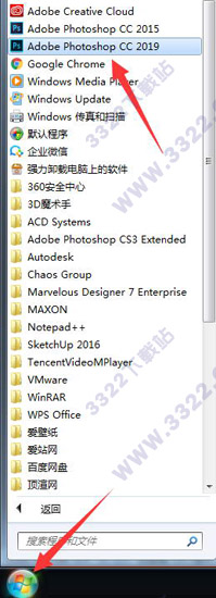 7、之后找到開始菜單搜索photoshop cc 2019打開軟件,如下圖所示: