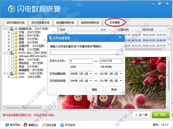 1)掃描完成后,點(diǎn)擊文件搜索,彈出”文件過(guò)濾設(shè)置“對(duì)話框。