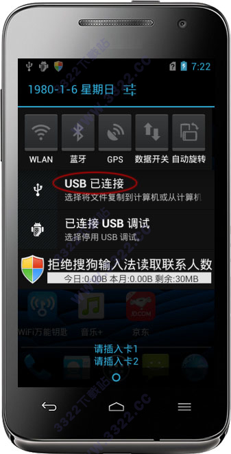 1)手機(jī)必須已經(jīng)Root,手機(jī)連接到電腦后顯示為一個(gè)磁盤就可以恢復(fù)。