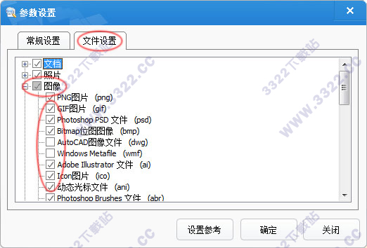 4)點(diǎn)擊文件設(shè)置選項(xiàng)卡可以切換到文件設(shè)置界面,我們支持恢復(fù)七大類,一百多種文件格式,建議勾選全部文件格式,以確保盡可能多的恢復(fù)文件,您可以根據(jù)您的恢復(fù)的需要勾選對(duì)應(yīng)的文件格式,如果您要恢復(fù)的是視頻、數(shù)碼照片等特別大(文件大小超過(guò)10MB)的媒體文件,建議您只勾選您需要恢復(fù)的文件格式。