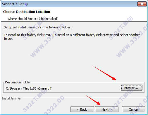 5、選擇程序的安裝路徑,默認(rèn)路徑為C:\Program Files (x86)\Smaart 7,可點(diǎn)擊browse更換安裝路徑,或直接默認(rèn),請(qǐng)確保所選擇的硬盤(pán)滿足其安裝要求,然后點(diǎn)擊“next”