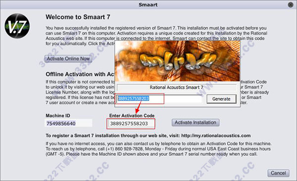 2、先運(yùn)行“SIA SmaartLive7”然后運(yùn)行keygen.exe,首先將machine id輸入到注冊(cè)機(jī)上然后點(diǎn)擊generate