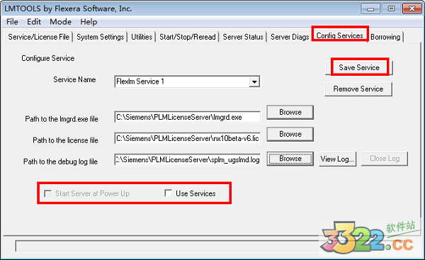 6、點(diǎn)擊“config services”選項(xiàng),在server name框中輸入nx10.0,再點(diǎn)擊3個(gè)browse按紐依次添加相應(yīng)該的文件;