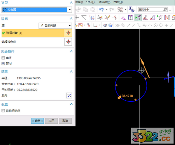6、擬合圓形,在繪圖窗口任意創(chuàng)建幾個(gè)點(diǎn)后,可以任意創(chuàng)意一個(gè)圓形,如下圖