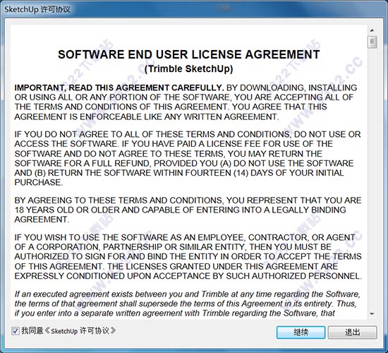 9、之后彈出軟件,打開SketchUp.exe就可以進入設計界面,點擊接受協(xié)議,如圖所示: