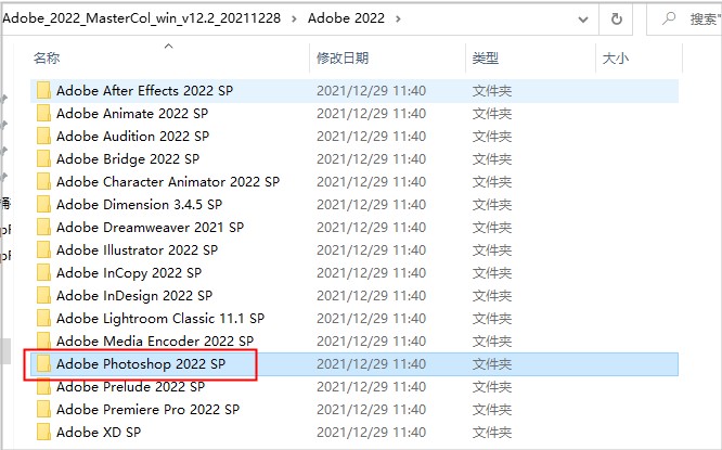 5、如果要安裝單獨(dú)一個(gè)版本就用包中的sp版,例如:ps2022版,首先“Adobe 2022”-“Adobe Photoshop 2022 SP”