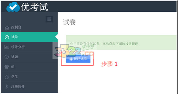 步驟1:打開優(yōu)考試在線考試軟件,在窗口界面左邊的點(diǎn)擊試題項(xiàng),再點(diǎn)擊 “新增試卷”。