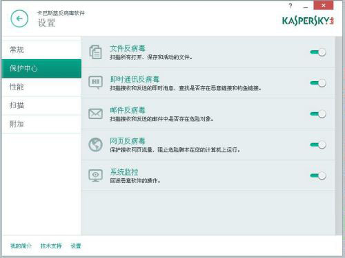 6、其它設(shè)置 保護(hù)中心功能,這里主要是卡巴斯基附加的一些保護(hù)功能,效果很不錯(cuò),也很實(shí)用。